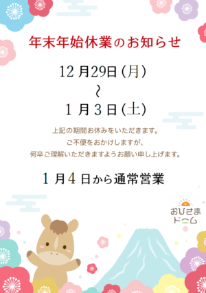年末年始休館のお知らせ